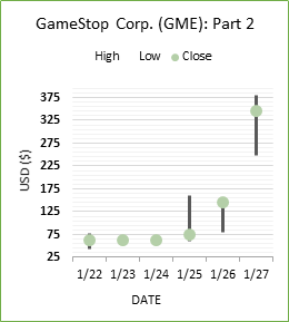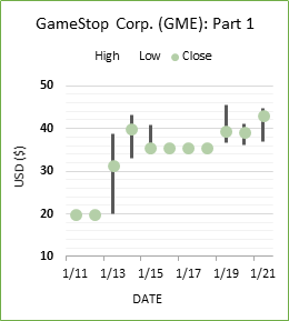 Yahoo! Finance. (2021, March 18). GameStop Corp (GME). Retrieved from Yahoo! Finance: https://finance.yahoo.com/quote/GME/history?period1=1610323200&period2=1611705600&interval=1d&filter=history&frequency=1d&includeAdjustedClose=true