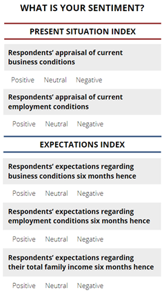 The Present Situation Index is based on consumers’ assessment of the current business and labor market environment while the Expectations Index examines their short-term outlook for income, business, and labor market conditions (The Conference Board, 2021).